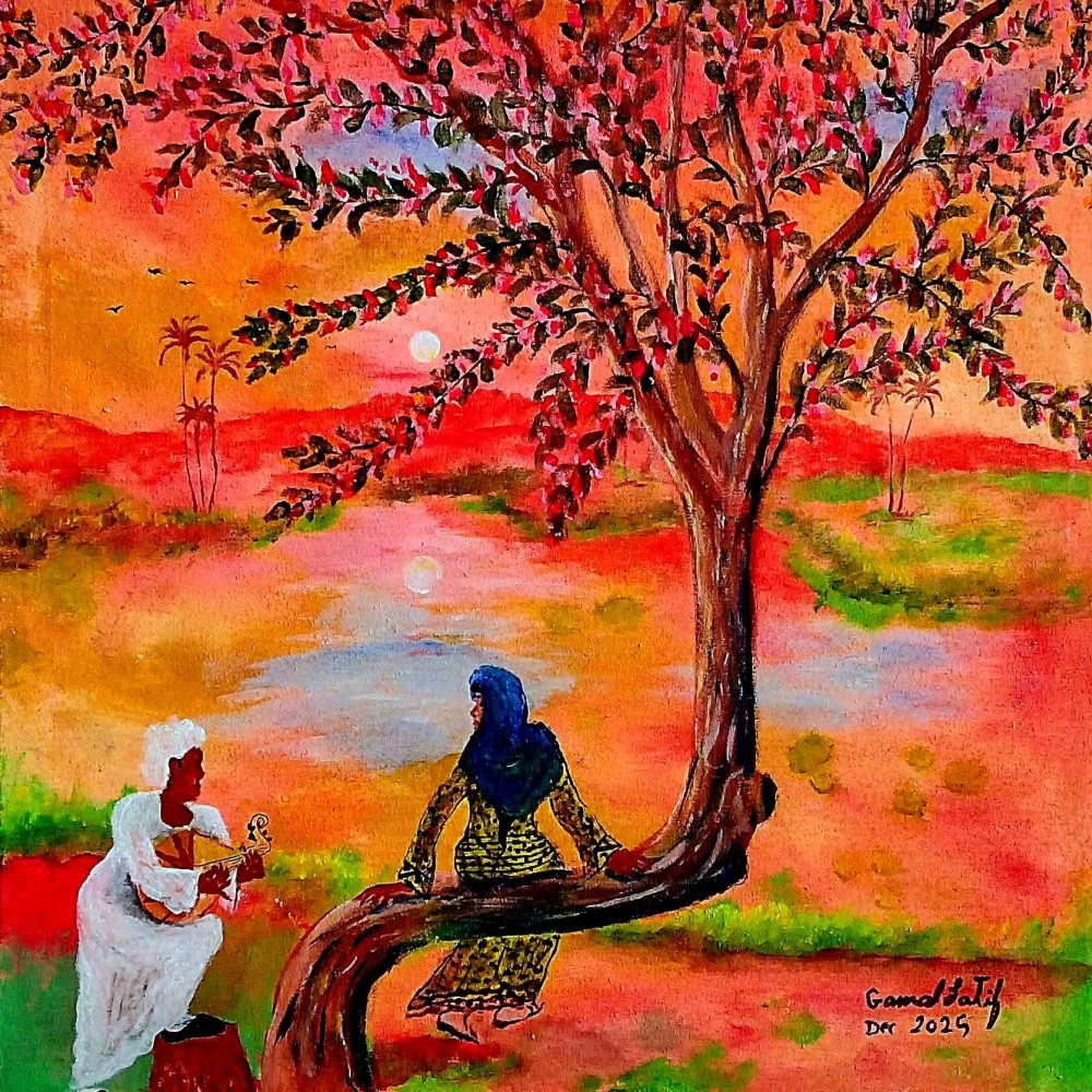 All his paintings reflect his thoughts and are inspired by his Nubian heritage and document Nubian traditions in vivid colours.