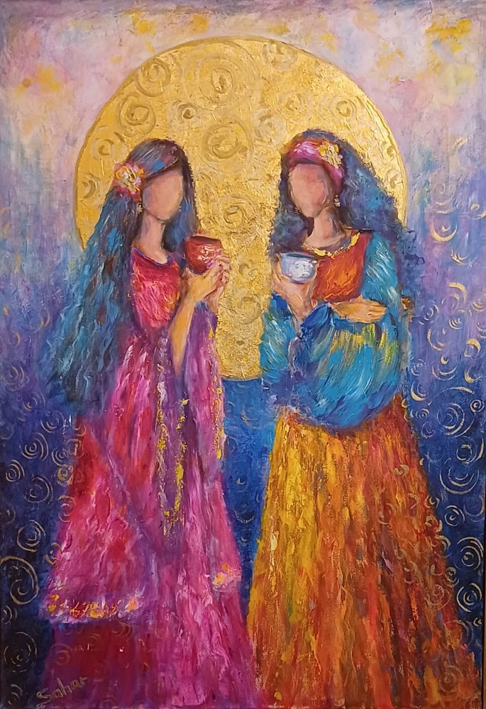 Reham Maher Women of the Nile Valley Acrylic and Mixed Media on Canvas 70 x 100 cm 40,100 EGP |