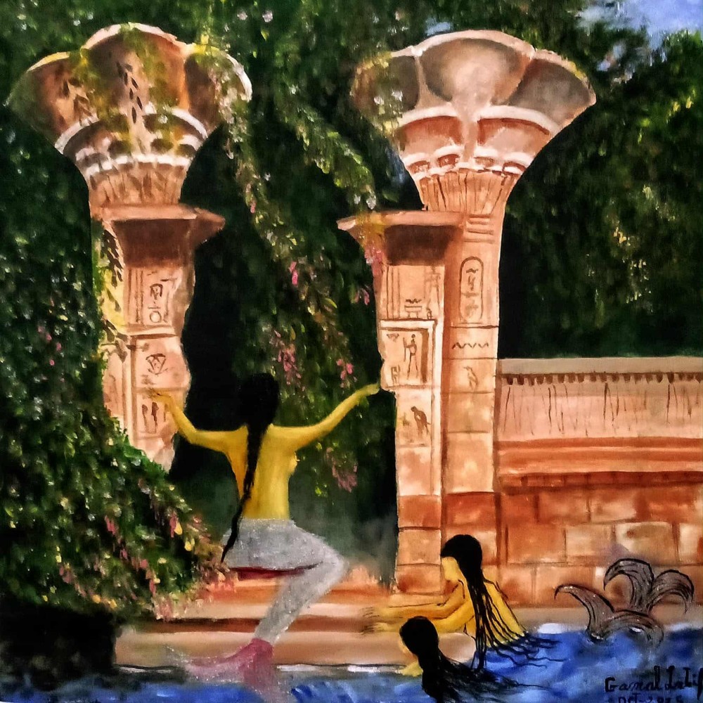 All his paintings reflect his thoughts and are inspired by his Nubian heritage and document Nubian traditions in vivid colours.