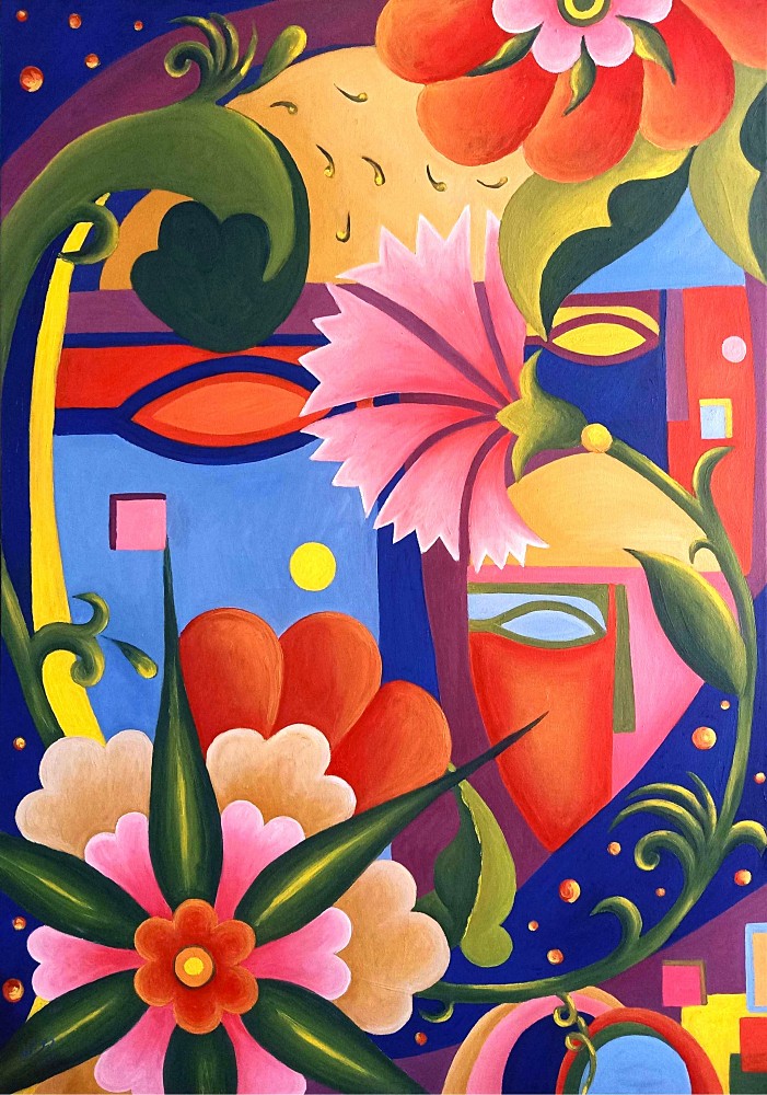 Egyptian-Turkish artist Nermin Gomaah was born in Alexandria, where she still lives. The city was her inspiration since childhood, making her draw everything she saw: the sea, the sand, scenes of children playing and building sand houses, nature shapes and their colours such as shades of blue, orange, beige and green tints.