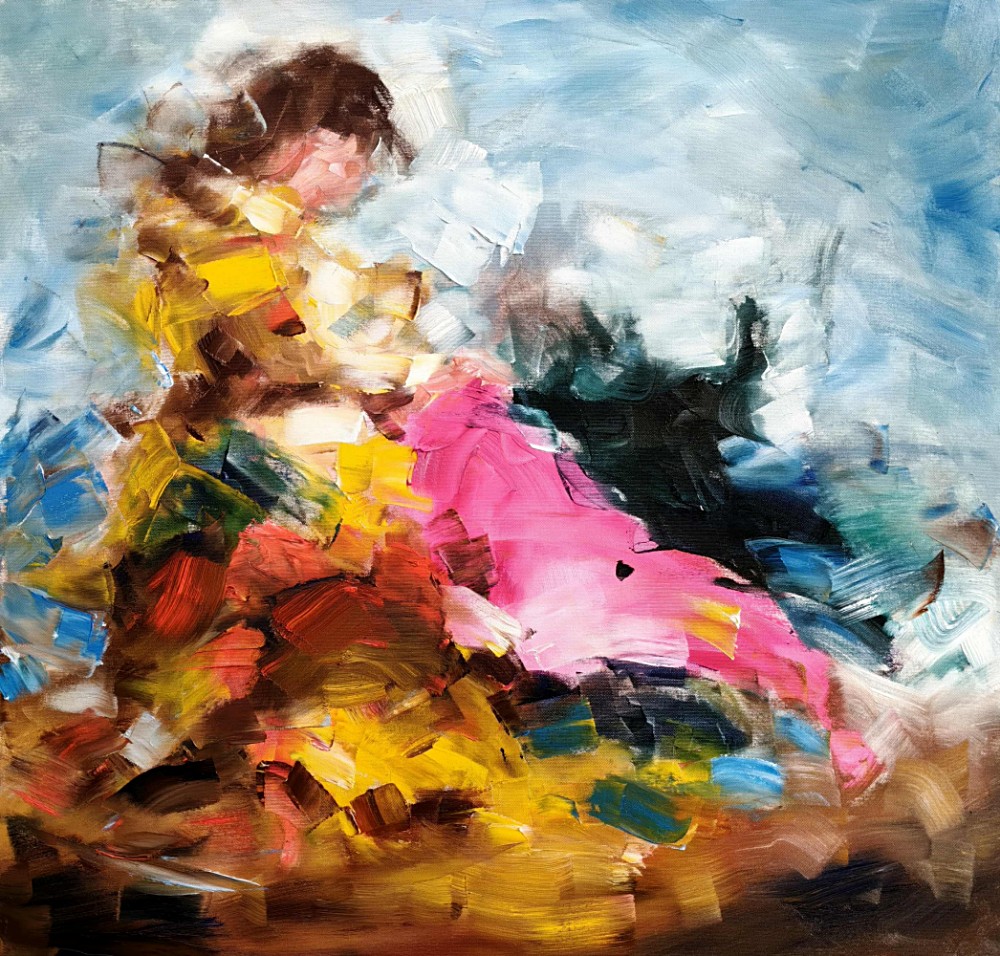 Nermin Gomaah Bonding Oil on Canvas 35 x 50 cm SOLD |